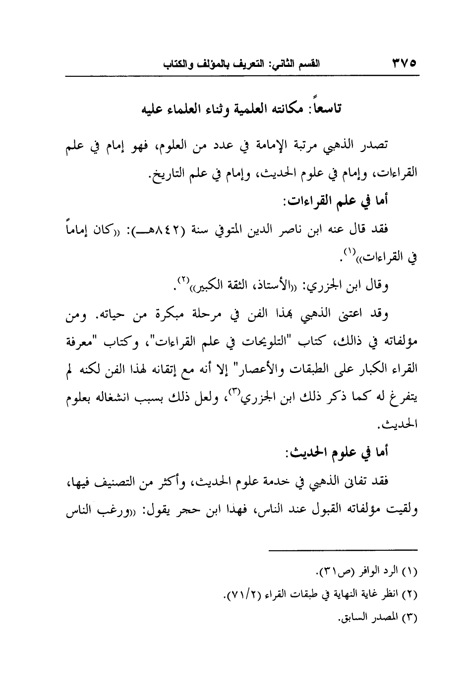 تاسعاً: مكانته العلمية وثناء العلماء عليه
