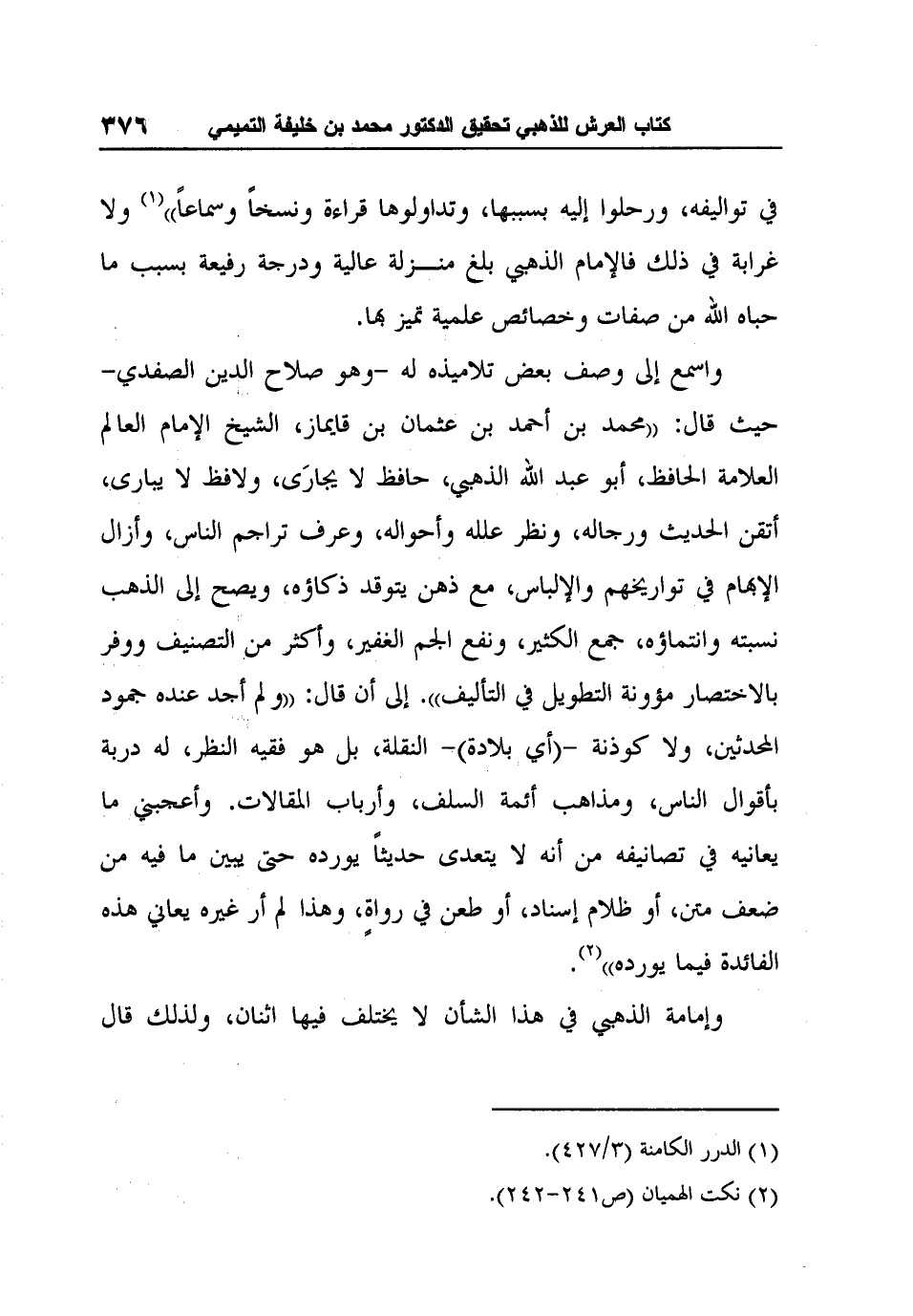 وإمامة الذهبي في هذا الشأن لا يختلف فيها اثنان، ولذلك قال