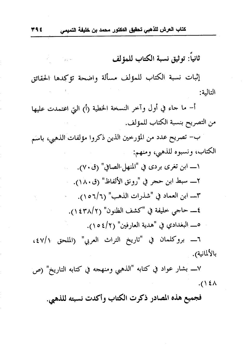 7ـ بشار عواد في كتابه "الذهبي ومنهجه في كتابه التاريخ" (ص148) .