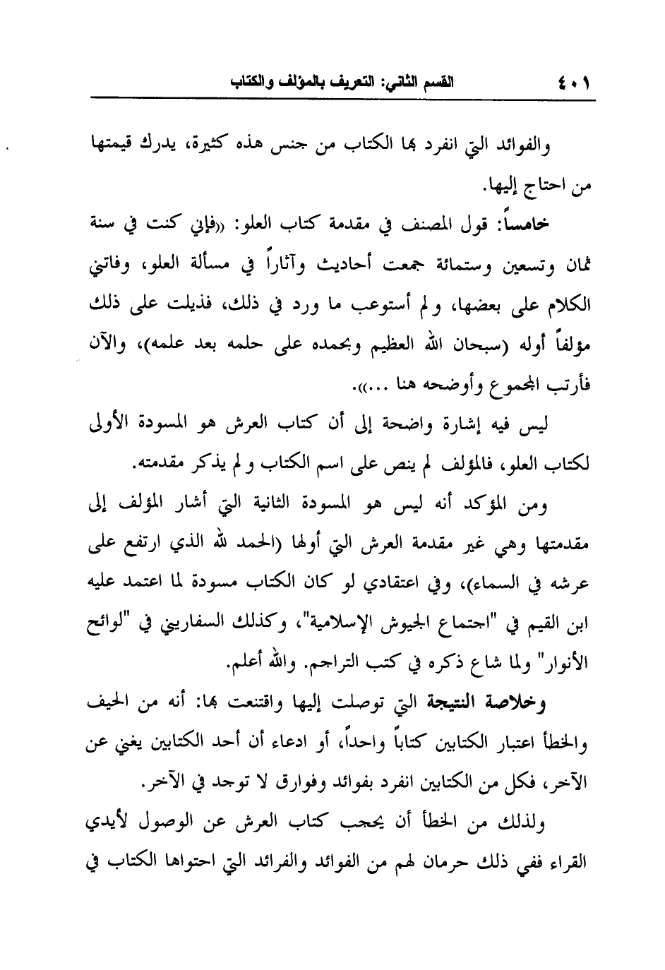 ولذلك من الخطأ أن يحجب كتاب العرش عن الوصول لأيدي القراء ففي ذلك حرمان لهم من الفوائد والفرائد التي احتواها الكتاب