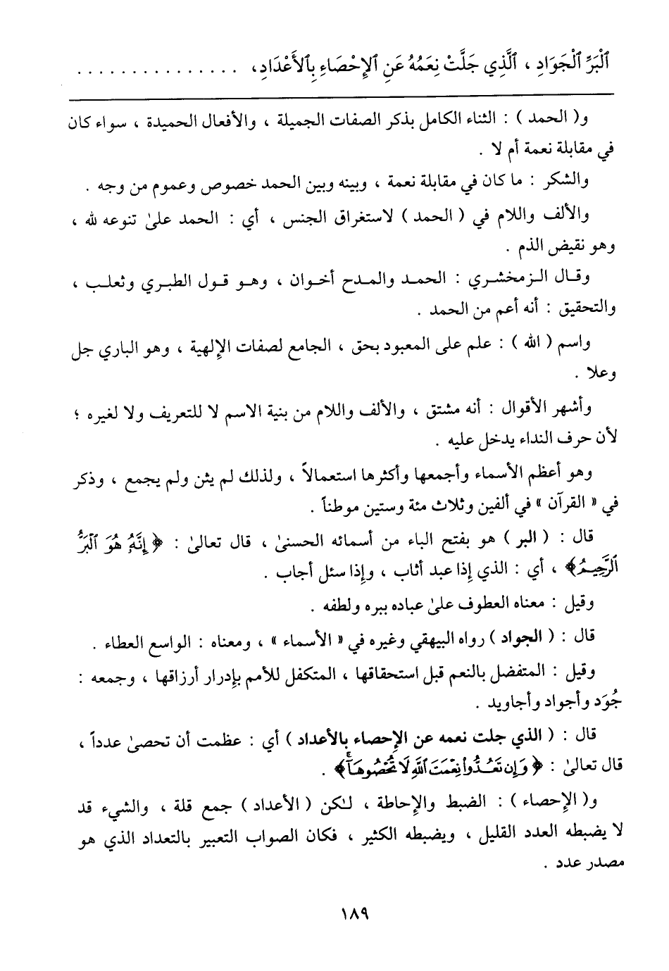 الْبَرَّ الْجَوَادِ، الَّذِي جَلَّتْ نِعَمُهُ عَنِ الإِحْصَاءِ بِالأَعْدَاءِ،