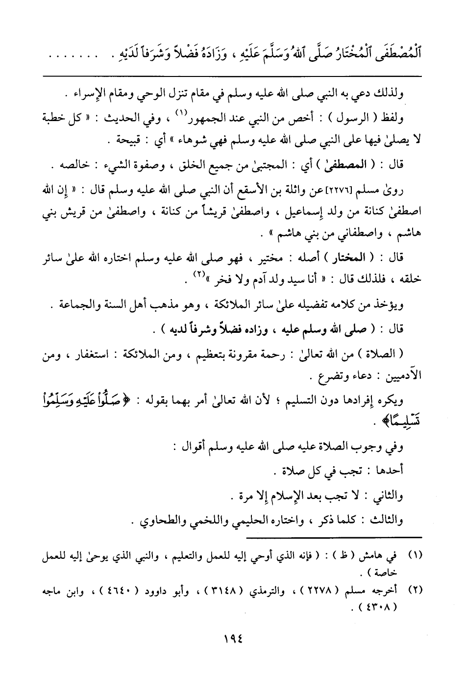 ولفظ (الرسول): أخص من النبي عند الجمهور، وفي الحديث: (كل خطبة لا يصلى فيها على النبي صلى الله عليه وسلم فهي شوهاء) أي: قبيحة.