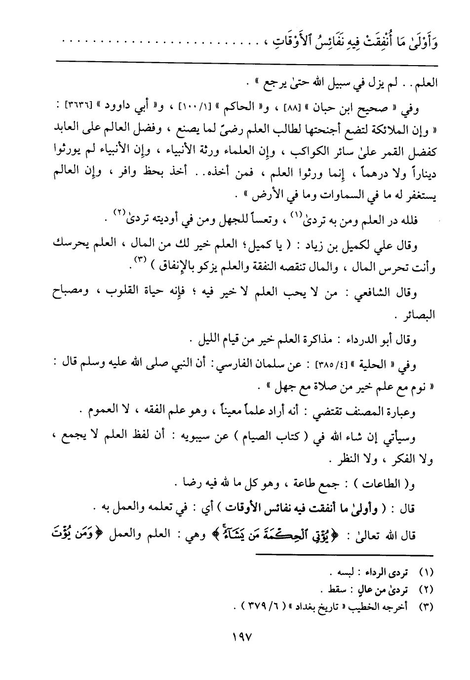 فلله در العلم ومن به تردى، وتعساً للجهل ومن في أوديته تردى.