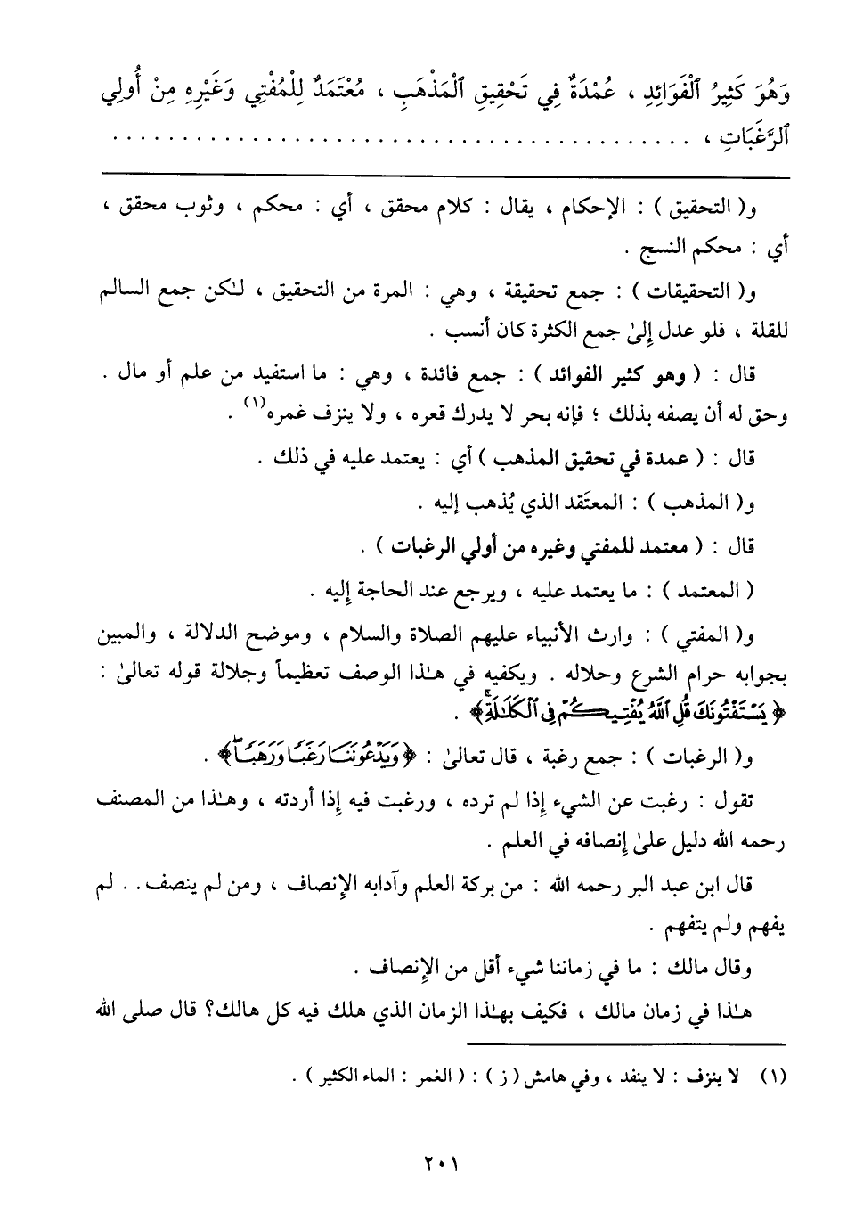 وَهُوَ كَثِيرُ الْفَوَائِدِ، عُمْدَةٌ فِي تَحْقِيقِ الْمَذْهَبِ، مُعْتَمَدٌ لَلْمُفْتِي وَغَيْرِهِ مِنْ أُولِي الرَّغَبَاتِ،