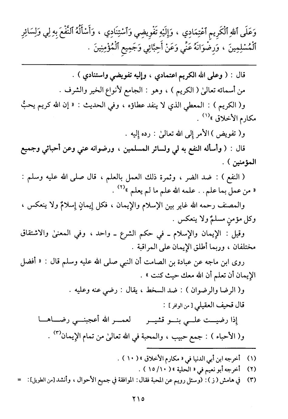 قال: (وعلى الله الكريم اعتمادي، وإليه تفويضي واستنادي).