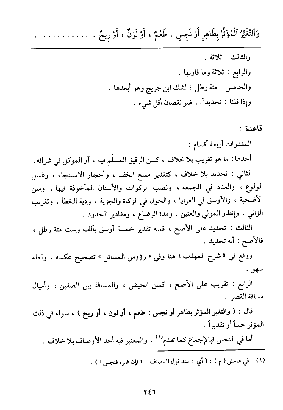 المقدرات أربعة أقسام: