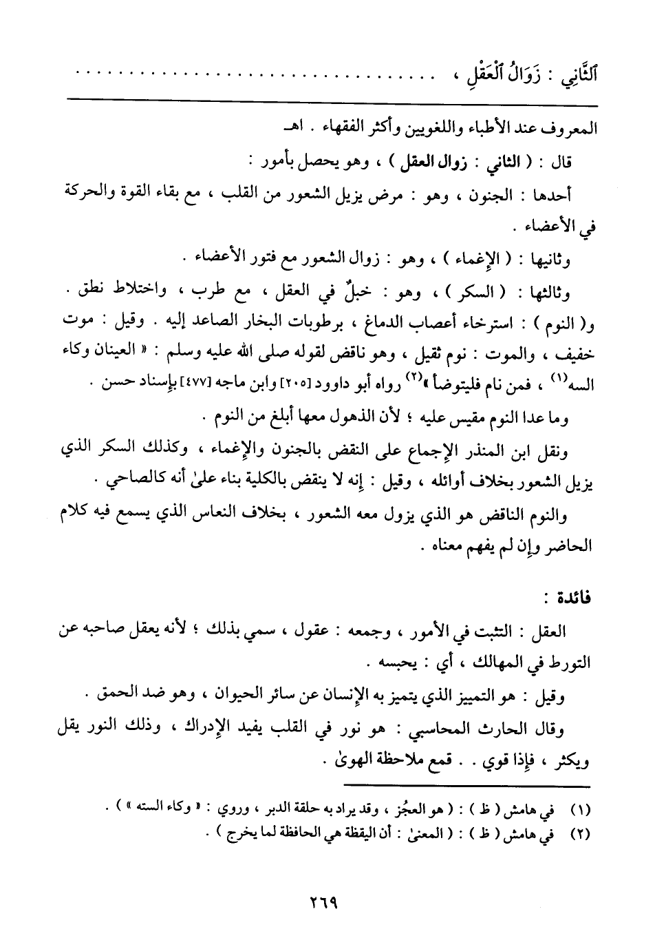 اَلثَّانِي: زَوَالُ اَلْعَقْلِ،