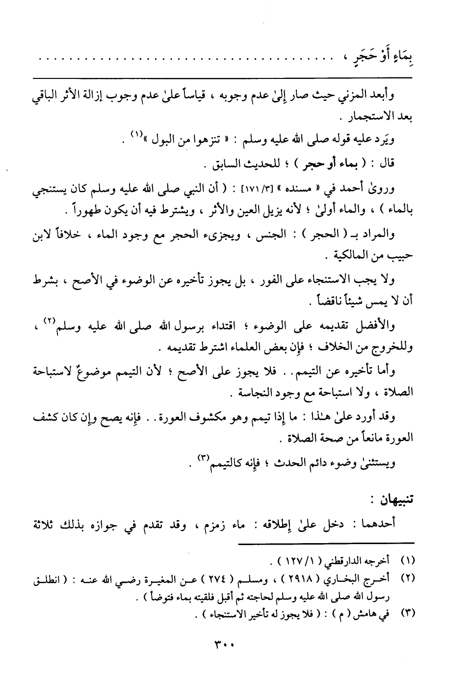 بِمَاءٍ أَوْ حَجَرٍ،