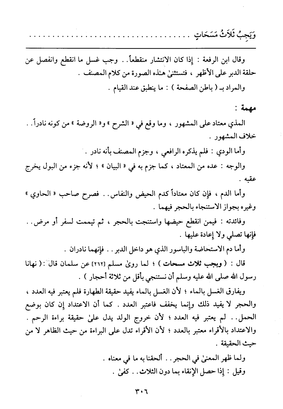وفائدته: فيمن انقطع حيضها واستنجت بالحجر، ثم تيممت لسفر أو مرض .. فإنها تصلي ولا إعادة عليها.