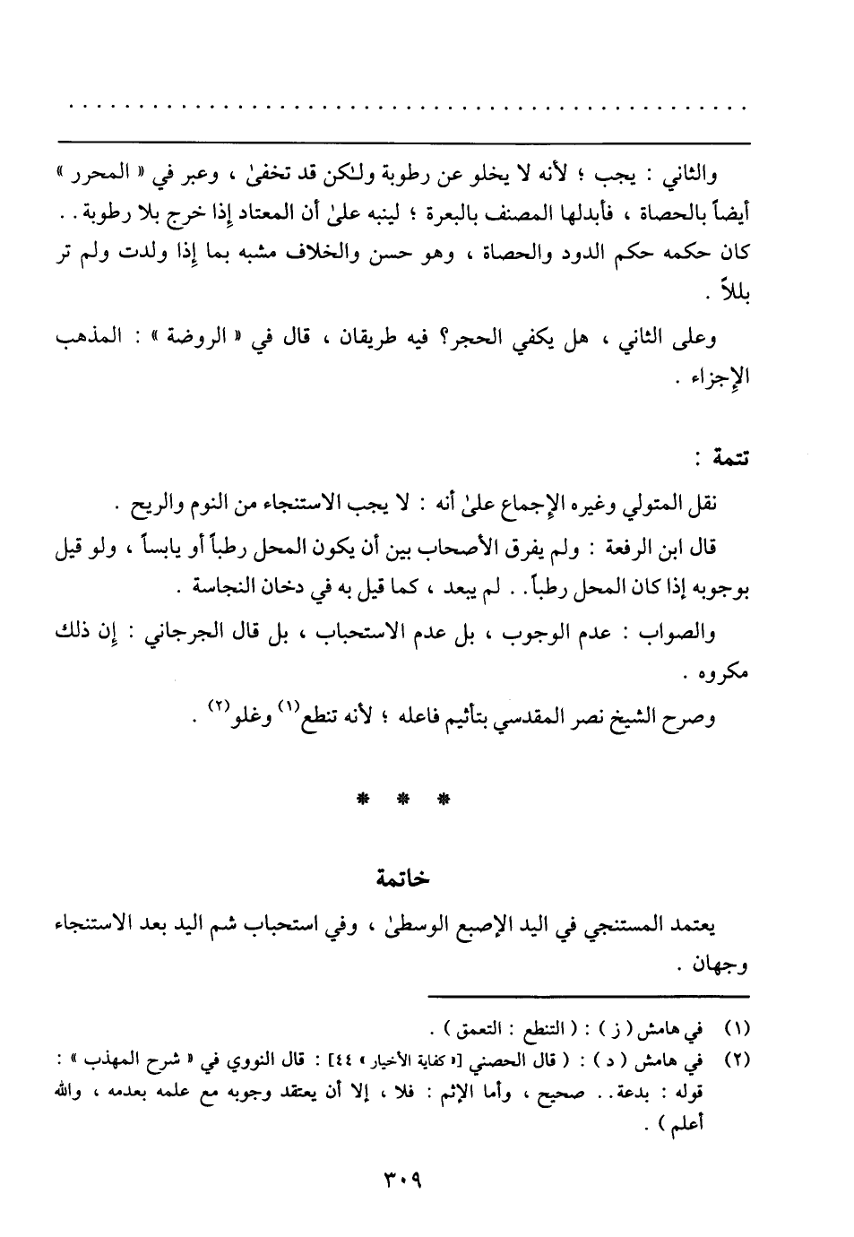 قال ابن الرفعة: ولم يفرق الأصحاب بين أن يكون المحل رطباً أو يابساً، ولو قيل بوجوبه إذا كان المحل رطباً .. لم يبعد، كما قيل به في دخان النجاسة.