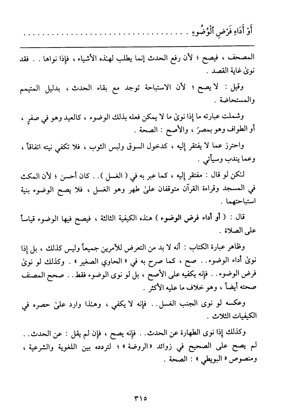 وكذلك إذا نوى الطهارة عن الحدث .. فإنه يصح، فإن لم يقل: عن الحدث .. لم يصح على الصحيح في زوائد (الروضة)؛ لتردده بين اللغوية والشرعية، ومنصوص (البويطي): الصحة.