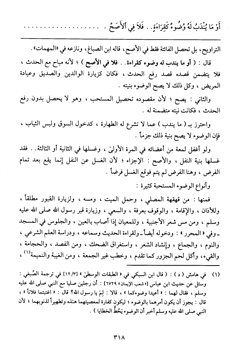أَوْ مَا يُنْدَبُ لَهُ وُضُوءٌ كَقِرَاءَةٍ .. فَلَا فِي اَلأَصَحَّ.