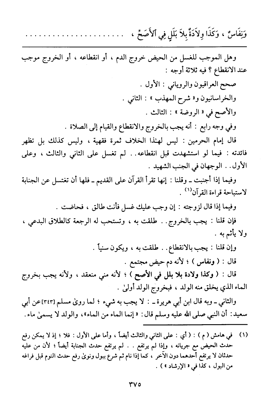 وهل الموجب للغسل من الحيض خروج الدم، أو انقطاعه، أو الخروج موجب عند الانقطاع؟ فيه ثلاثة أوجه: