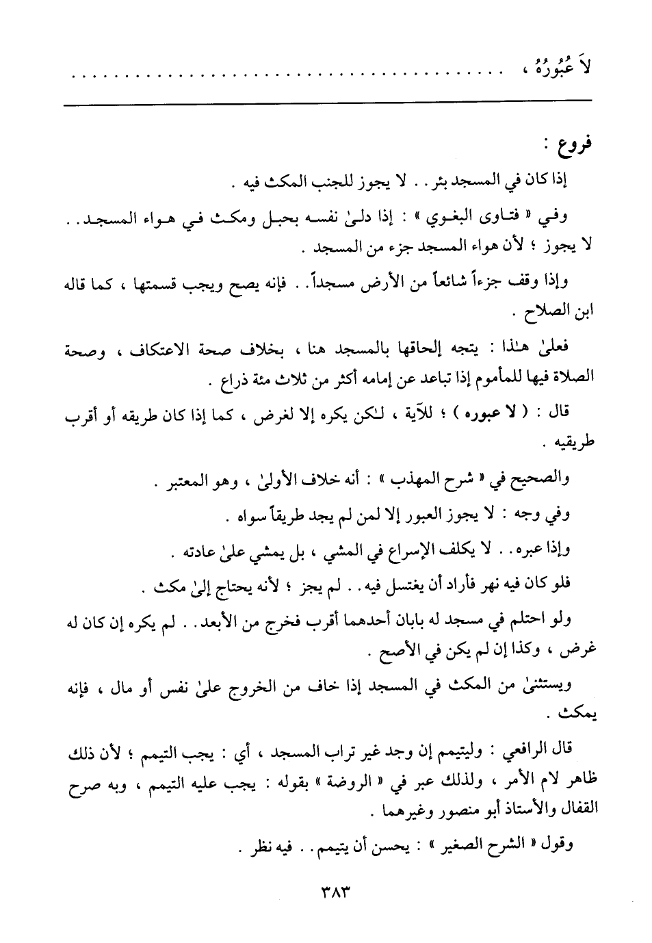 إذا كان في المسجد بئر .. لا يجوز للجنب المكث فيه.