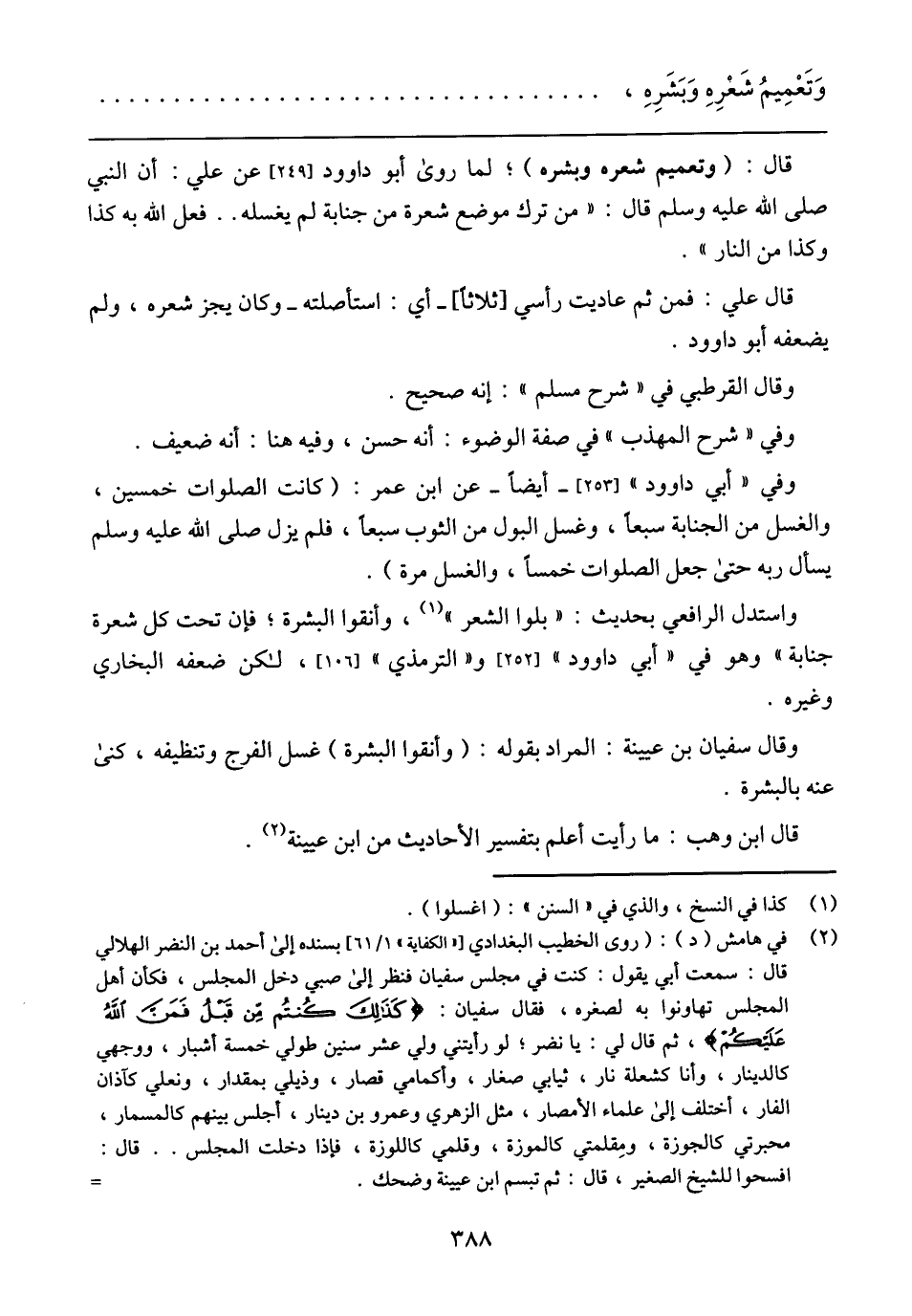 وقال سفيان بن عيينة: المراد بقوله: (وأنقوا البشرة) غسل الفرج وتنظيفه، كنى عنه بالبشرة.