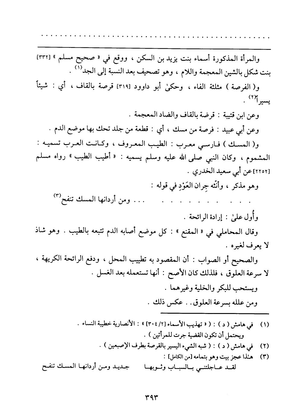 وعن أبي عبيد: فرصة من مسك، أي: قطعة من جلد تحك بها موضع الدم.