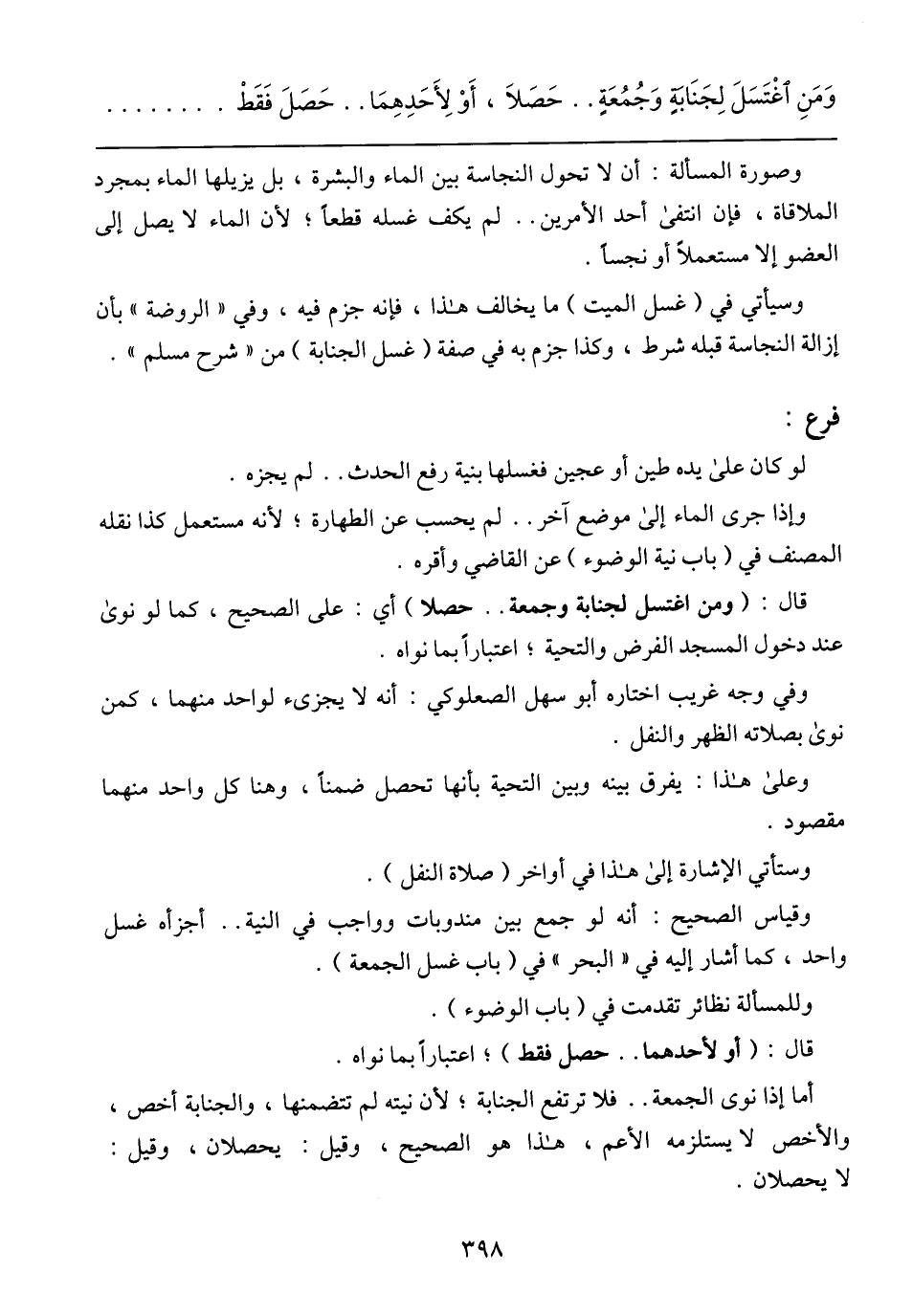 وَمَنِ اغْتَسَلَ لِجَنَابَةٍ وَجُمُعَةٍ .. حَصَلاَ، اَوْ لِأَحَدِهِمَا .. حَصَلَ فَقَطْ.