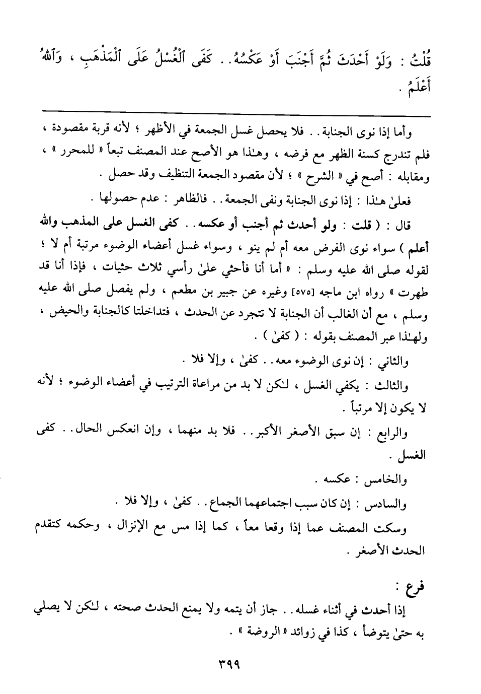 قُلْتُ: وَلَوْ أَحْدَثَ ثُمَّ أَجْنَبَ أَوْ عَكْسُهُ .. كَفَى الْغُسْلُ عَلَى الْمَذْهَبِ، واللهُ أَعْلَمُ.