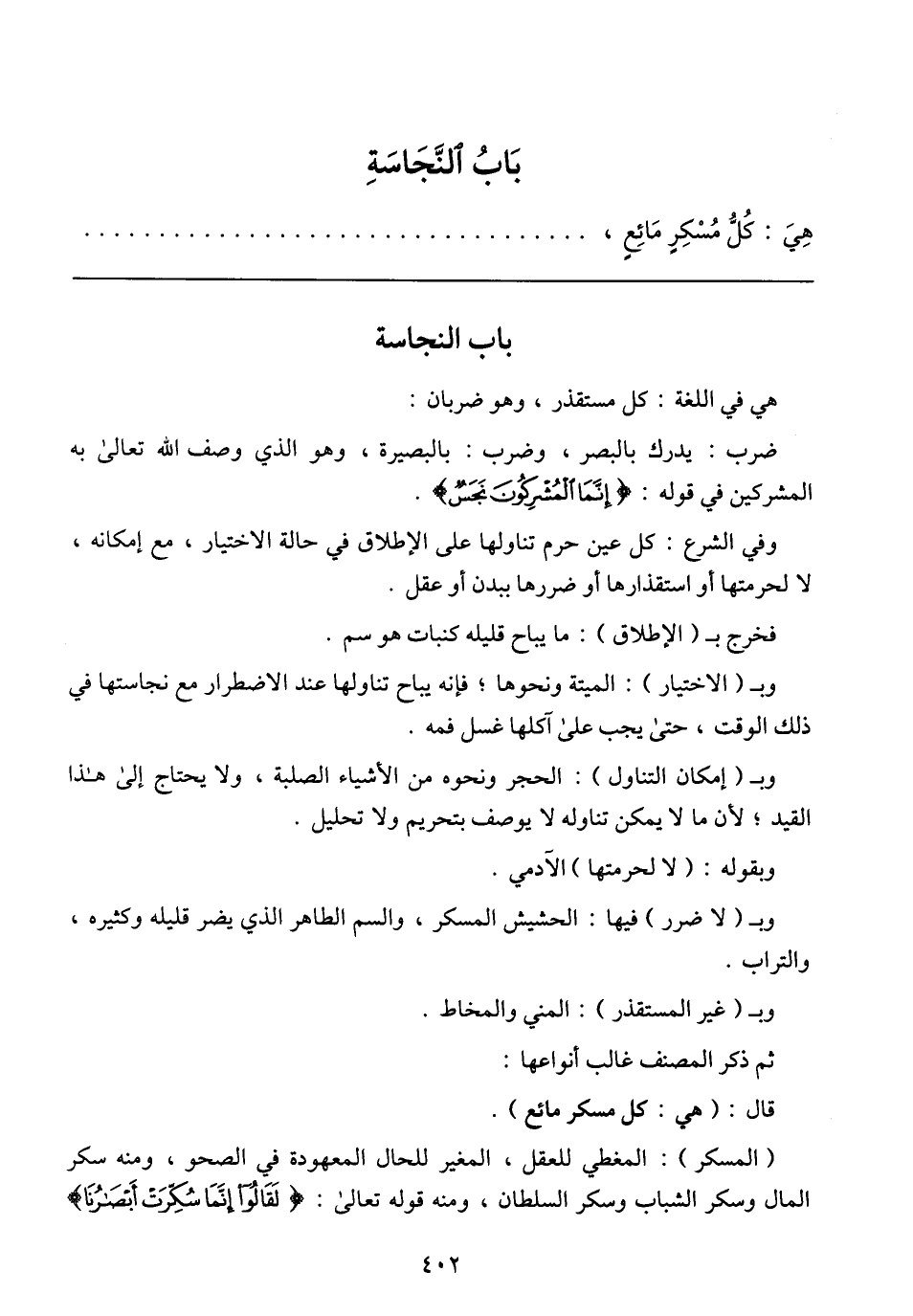(المسكر): المغطي للعقل، المغير للحال المعهودة في الصحو، ومنه سكر المال وسكر الشباب وسكر السلطان، ومنه قوله تعالى: {لَقَالُوا إنَّمَا سُكِّرَتْ أَبْصَارُنَا}.