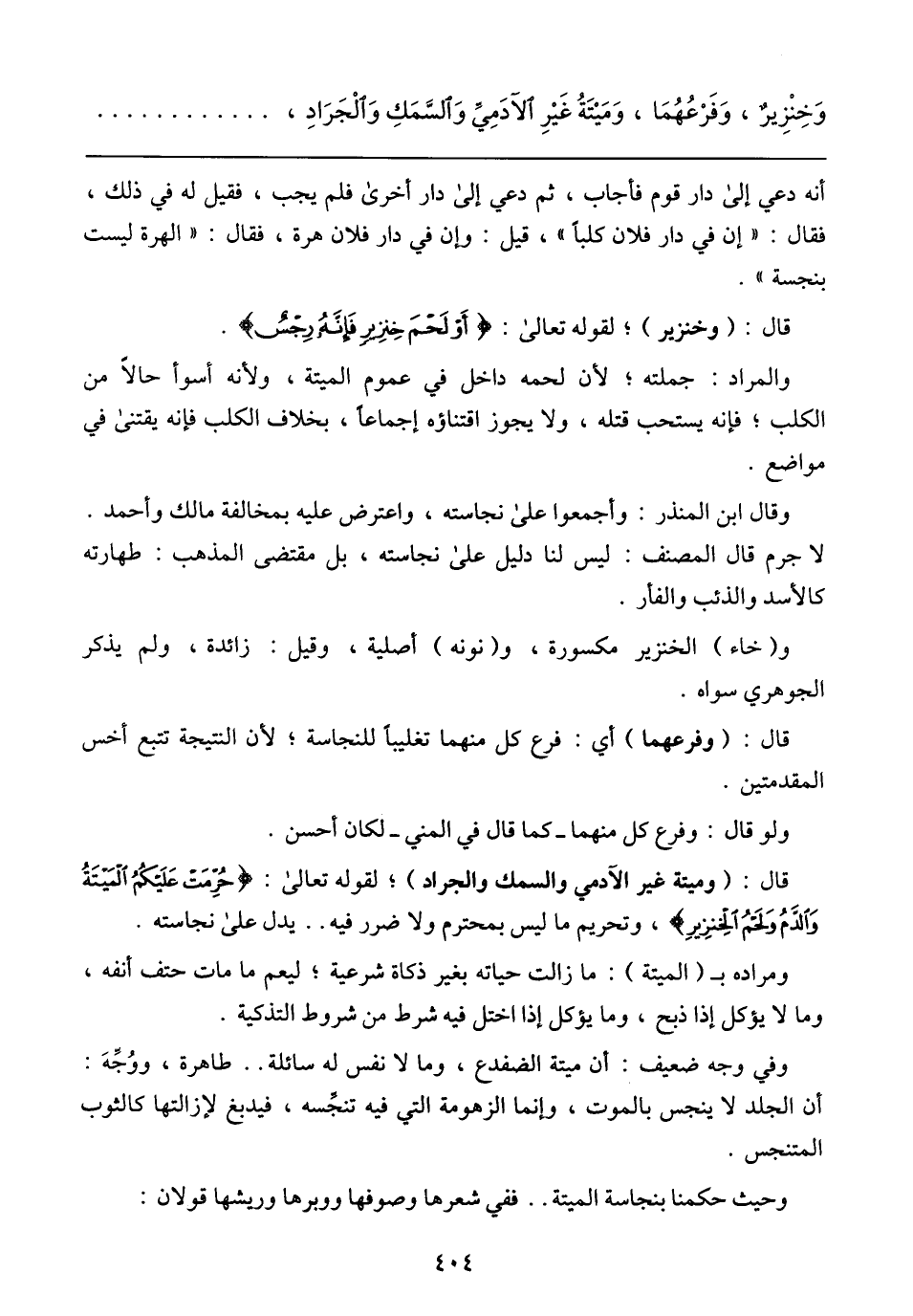 قال: (وخنزير)؛ لقوله تعالى: {أَوْ لَحْمَ خِنزِيرٍ فَإنَّهُ رِجْسٌ}.