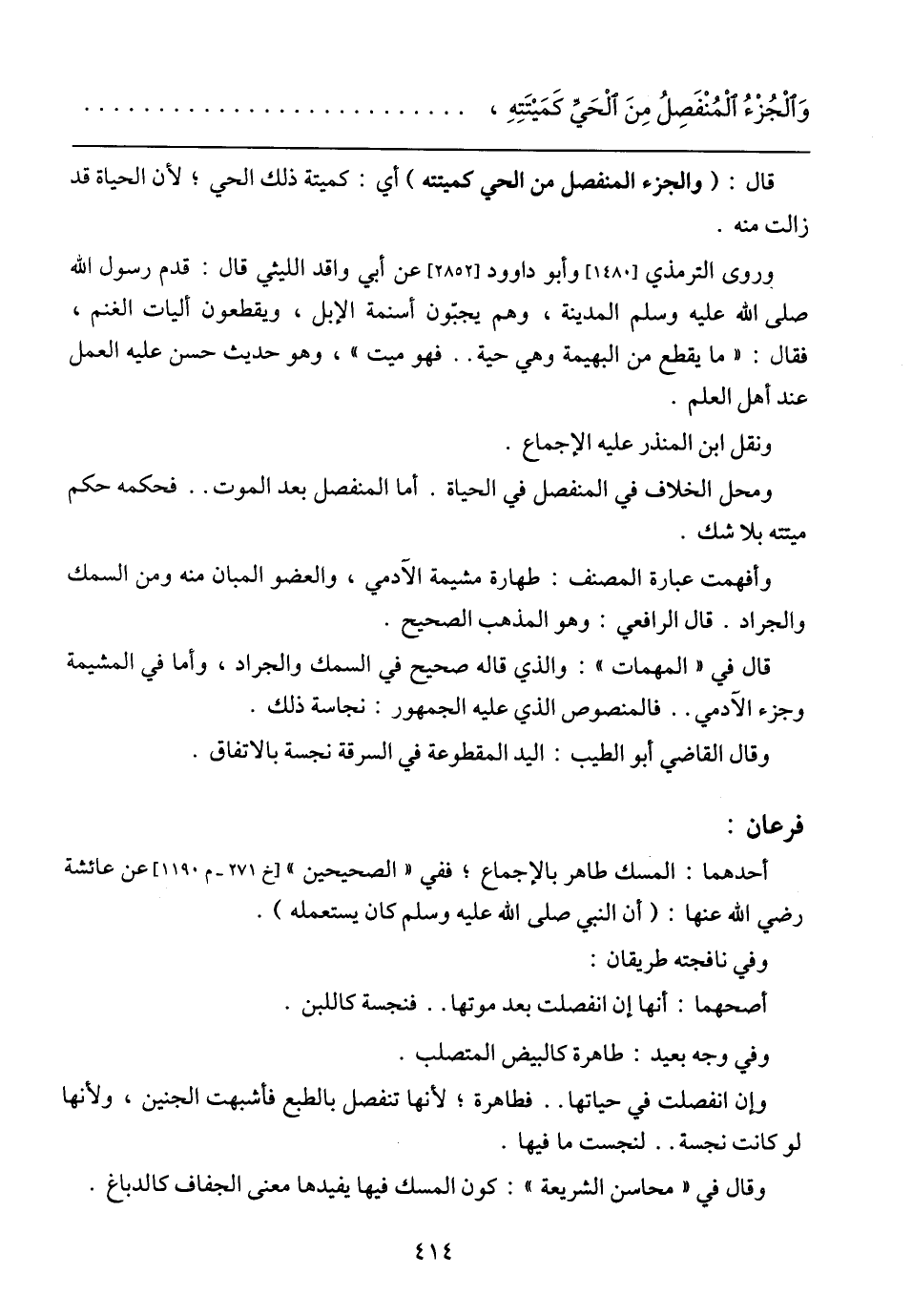 وَالْجُزْءُ الْمُنْفَصِلُ مِنَ الْحَيِّ كَمَيْتَتِهِ،