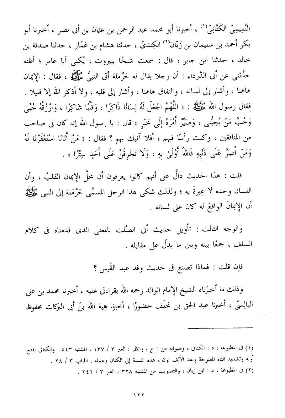 قُلْتُ هَذَا الْحَدِيث دَالٌّ عَلَى أَنَّهُمْ كَانُوا يَعْرِفُونَ أَنَّ مَحَلَّ الإِيمَانِ الْقَلْبُ وَأَنَّ اللِّسَانَ وَحْدَهُ لَا عِبْرَةَ بِهِ وَلِذَلِكَ شَكَى هَذَا الرَّجُلُ الْمُسَمَّى حَرْمَلَةُ إِلَى النَّبِيِّ صَلَّى اللَّهُ عَلَيْهِ وَسَلَّمَ أَنَّ الإِيمَانَ الْوَاقِعَ لَهُ كَانَ عَلَى لِسَانِهِ