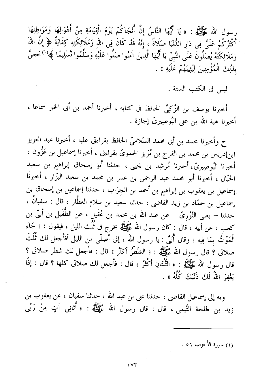 رَسُول الله صلى الله عَلَيْهِ وَسلم يَا أَيهَا النَّاسُ إِنَّ أَنْجَاكُمْ يَوْمَ الْقِيَامَةِ مِنْ أَهْوَالِهَا وَمَوَاطِنِهَا أَكْثَرُكُمْ عَلِيَّ فِي دَارِ الدُّنْيَا صَلاةً إِنَّهُ قَدْ كَانَ فِي اللَّهِ وَمَلائِكَتِهِ كِفَايَةٌ {إِن الله وَمَلَائِكَته يصلونَ على النَّبِي يَا أَيهَا الَّذين آمنُوا صلوا عَلَيْهِ وسلموا تَسْلِيمًا} خَصَّ بِذَلِكَ الْمُؤْمِنِينَ لِيُثِيبَهُمْ عَلَيْهِ