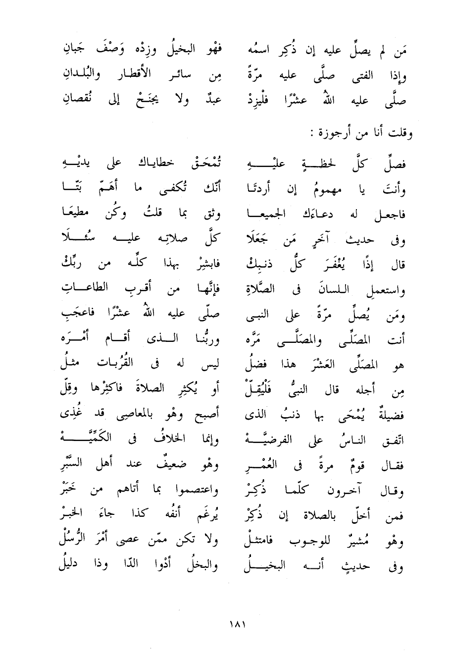 (من لم يصل عَلَيْهِ إِن ذكر اسْمه ... فَهُوَ الْبَخِيل وزده وصف جبان)