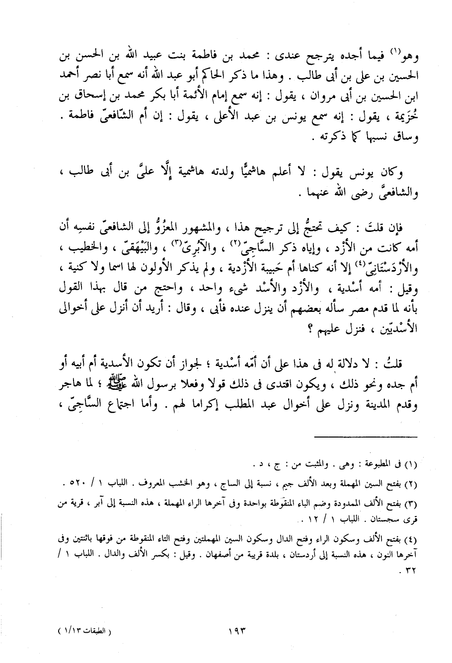 وَهُوَ فِيمَا أَجِدهُ يتَرَجَّح عِنْدِي مُحَمَّد بْن فَاطِمَة بنت عبيد اللَّه بْن الْحَسَن بْن الْحُسَيْن بْن عَلِيّ بْن أَبِي طَالب وَهَذَا مَا ذكر الْحَاكِم أَبُو عَبْد اللَّه أَنه سمع أَبَا نصر أَحْمد ابْن الْحُسَيْن بْن أَبِي مَرْوَان يَقُول إِنَّه سمع إِمَام الْأَئِمَّة أَبَا بكر مُحَمَّد بْن إِسْحَاق بْن خُزَيْمَة يَقُول إِنَّه سمع يُونُس بْن عَبْد الْأَعْلَى يَقُول إِن أم الشَّافِعِي فَاطِمَة وسَاق نَسَبهَا كَمَا ذكرته