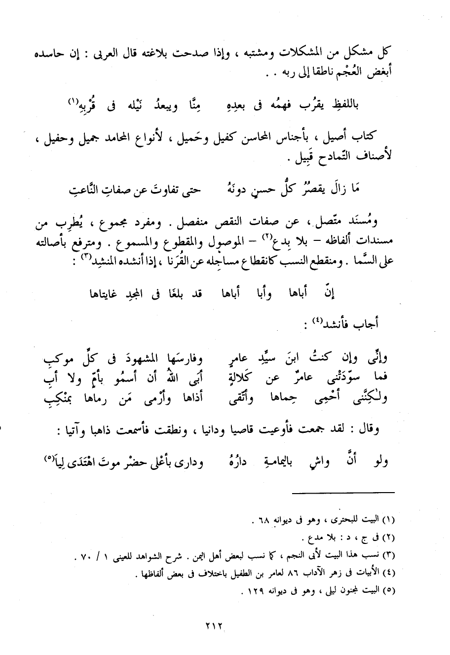 كل مُشكل من المشكلات ومشتبه وَإِذا صدحت بلاغته قَالَ الْعَرَبِيّ إِن حاسده أبْغض الْعَجم ناطقا إِلَى ربه