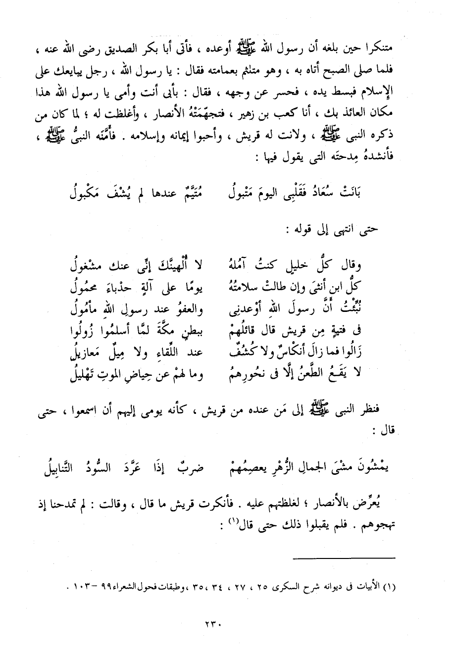 (بَانَتْ سُعَادُ فَقَلْبِي الْيَوْمَ مَتْبُولٌ ... مُتَيَّمٌ عِنْدَهَا لَمْ يُشْفَ مَكْبُولُ)