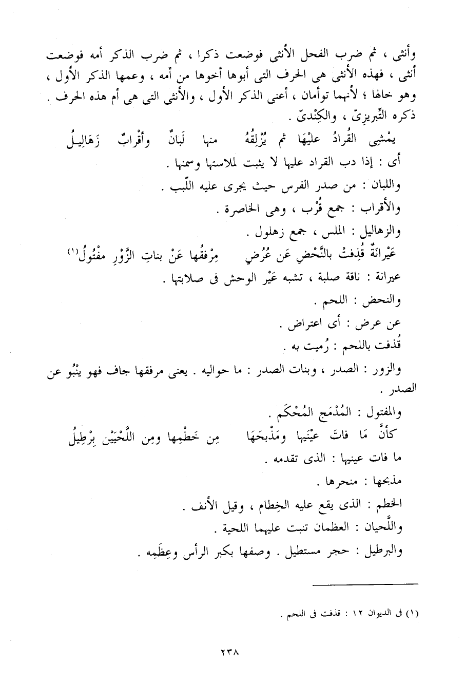 (كَأَن مَا فَاتَ عينيها ومذبحها ... من خطمها وَمن اللحيين برطيل)