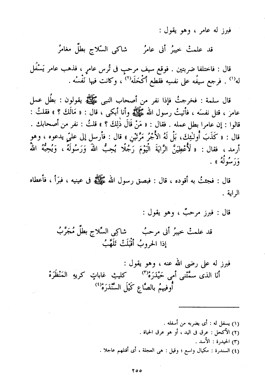 قَالَ فَبَرَزَ مَرْحَبٌ وَهُوَ يَقُولُ