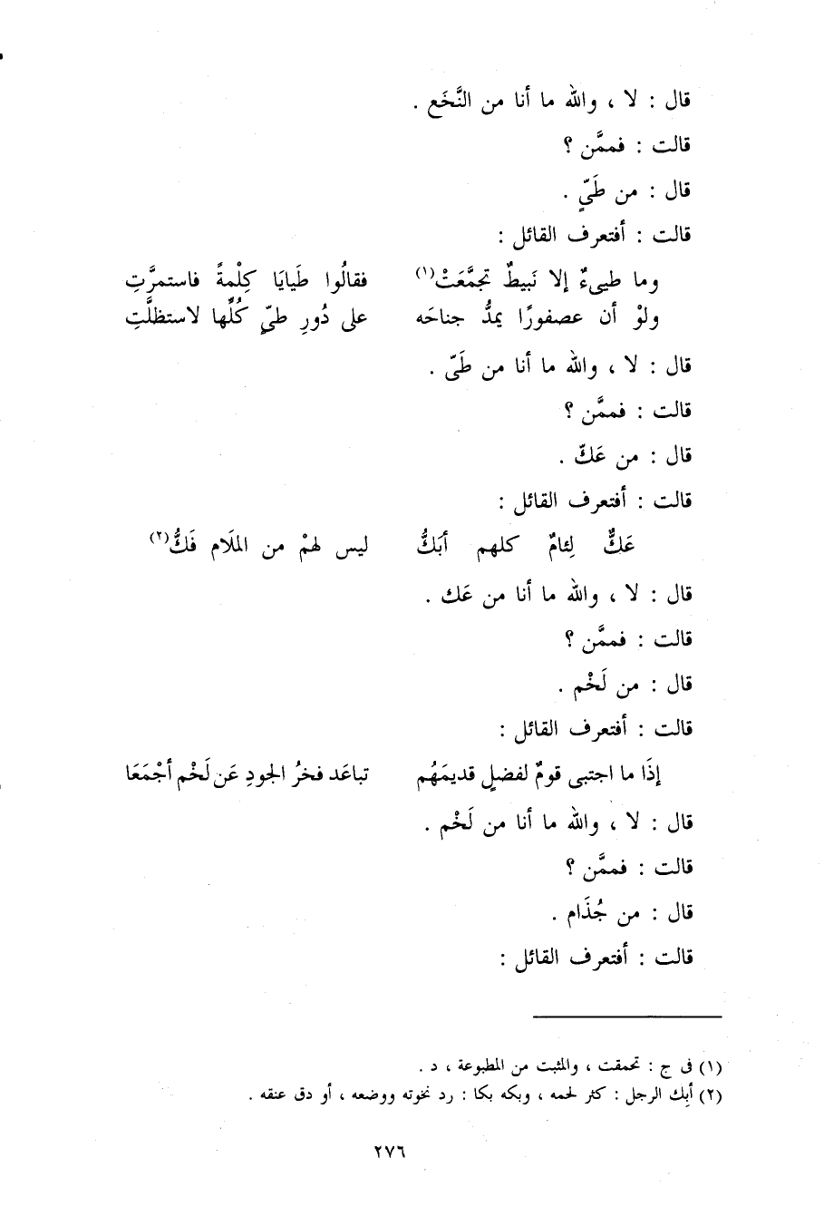 (وَمَا طيىء إِلَّا نبيط تجمعت ... فَقَالُوا طيايا كلمة فاستمرت)