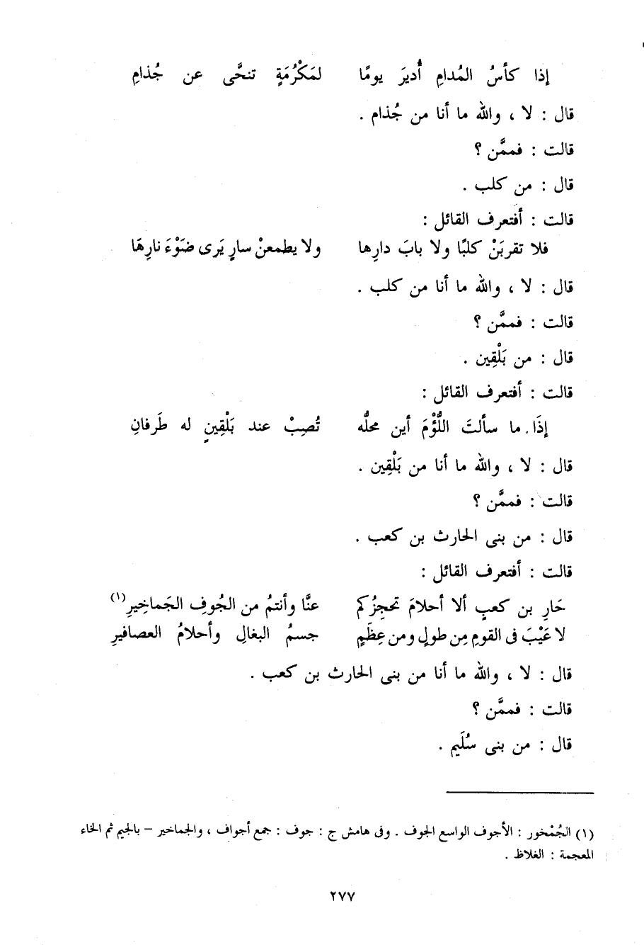 (حَار بْن كَعْب أَلا أَحْلَام تحجزكم ... عَنَّا وَأَنْتُم من الْجوف الجماخير)