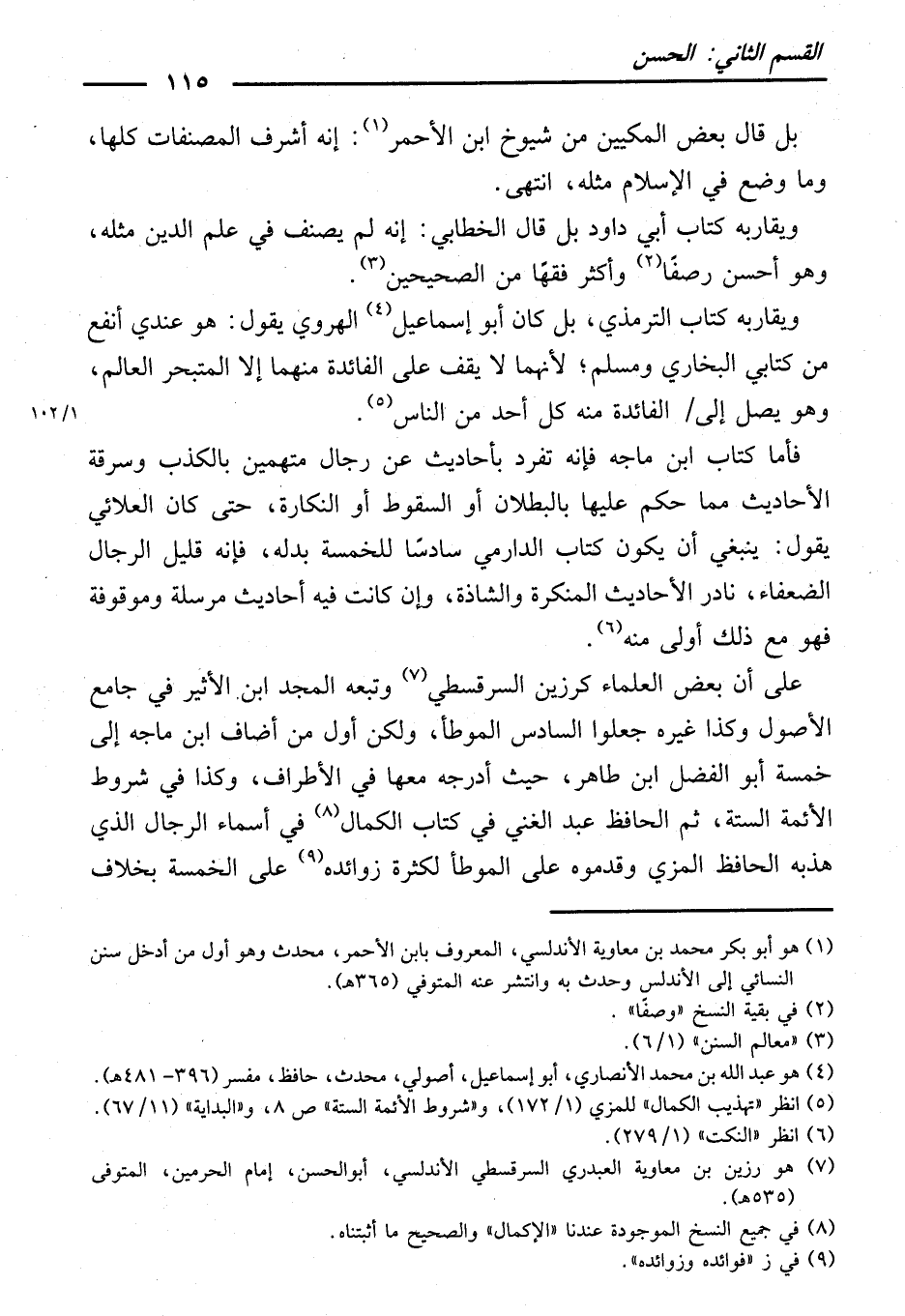 عَلَى أَنَّ بَعْضَ الْعُلَمَاءِ كَرُزَيْنٍ السَّرَقُسْطِيِّ وَتَبِعَهُ الْمَجْدُ بْنُ الْأَثِيرِ فِي جَامِعِ الْأُصُولِ وَكَذَا غَيْرُهُ جَعَلُوا السَّادِسَ الْمُوَطَّأَ.
