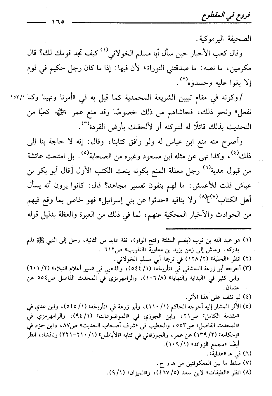 وَأَصْرَحُ مِنْهُ مَنْعُ ابْنِ عَبَّاسٍ لَهُ وَلَوْ وَافَقَ كِتَابَنَا، وَقَالَ: إِنَّهُ لَا حَاجَةَ بِنَا إِلَى ذَلِكَ، وَكَذَا نَهَى عَنْ مِثْلِهِ ابْنُ مَسْعُودٍ وَغَيْرُهُ مِنَ الصَّحَابَةِ، بَلِ امْتَنَعَتْ عَائِشَةُ مِنْ قَبُولِ هَدِيِّةِ رَجُلٍ، مُعَلِّلَةً الْمَنْعَ بِكَوْنِهِ يَنْعَتُ الْكُتُبَ الْأُوَلَ.