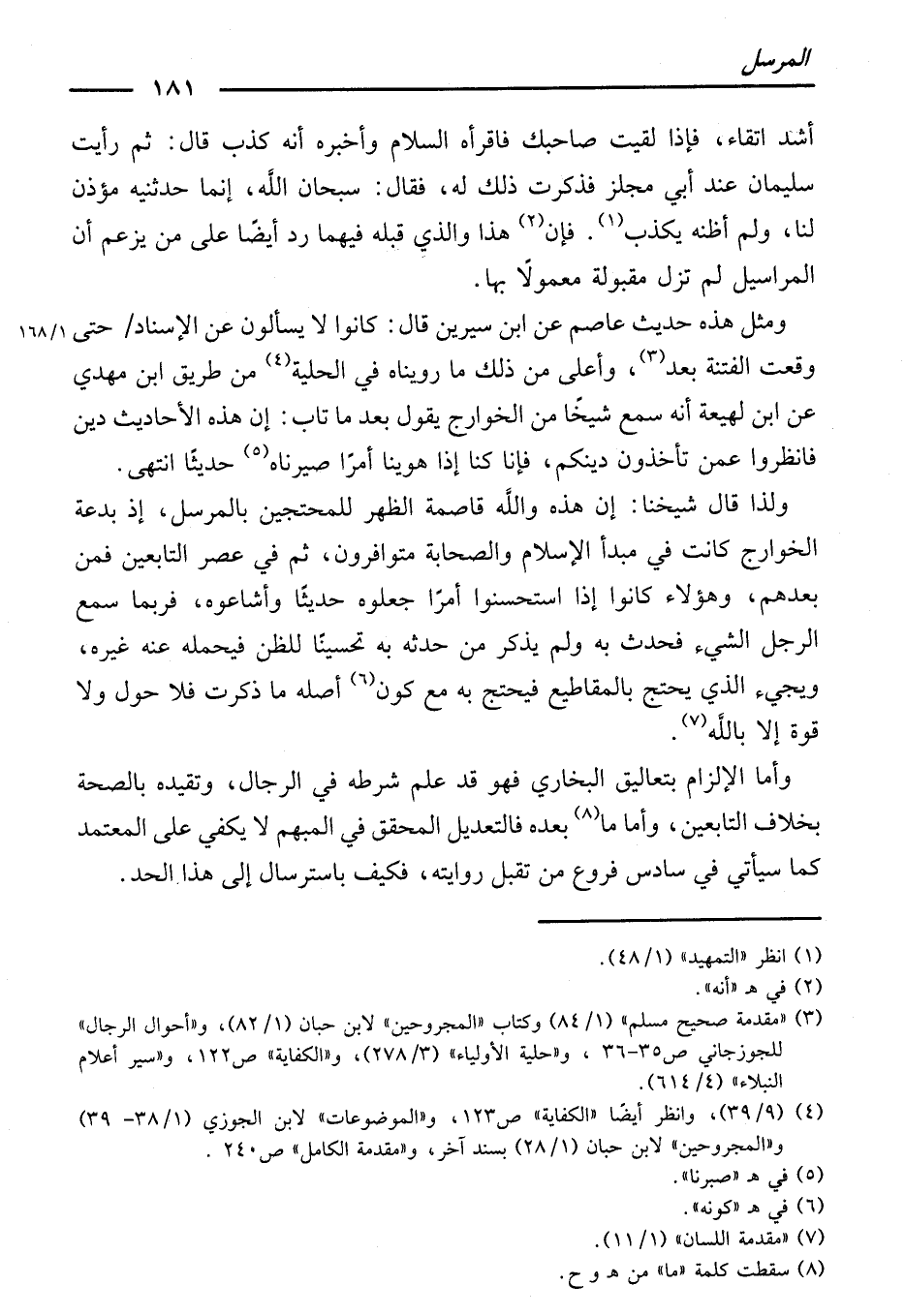 قَالَ: ثُمَّ رَأَيْتُ سُلَيْمَانَ عِنْدَ أَبِي مِجْلَزٍ، فَذَكَرْتُ ذَلِكَ لَهُ، فَقَالَ: سُبْحَانَ اللَّهِ، إِنَّمَا حَدَّثَنِيهِ مُؤَذِّنٌ لَنَا، وَلَمْ أَظُنَّهُ يَكْذِبُ. فَإِنَّ هَذَا وَالَّذِي قَبْلَهُ فِيهِمَا رَدٌّ أَيْضًا عَلَى مَنْ يَزْعُمُ أَنَّ الْمَرَاسِيلَ لَمْ تَزَلْ مَقْبُولَةً مَعْمُولًا بِهَا.