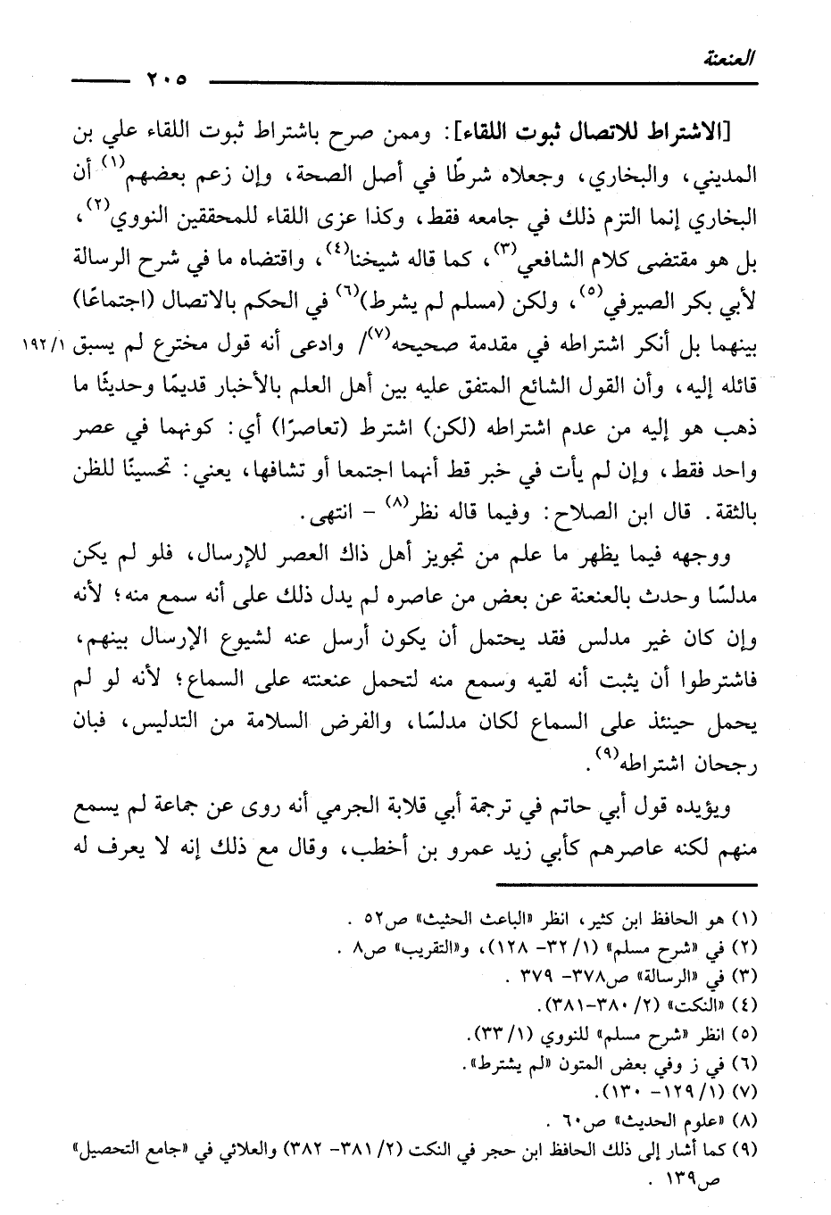 [الِاشْتِرَاطُ لِلِاتِّصَالِ ثُبُوتُ اللِّقَاءِ] وَمِمَّنْ صَرَّحَ بِاشْتِرَاطِ ثُبُوتِ اللِّقَاءِ عَلِيُّ بْنُ الْمَدِينِيِّ، وَالْبُخَارِيُّ، وَجَعَلَاهُ شَرْطًا فِي أَصْلِ الصِّحَّةِ، وَإِنْ زَعَمَ بَعْضُهُمْ أَنَّ الْبُخَارِيَّ إِنَّمَا الْتَزَمَ ذَلِكَ فِي جَامِعِهِ فَقَطْ، وَكَذَا عَزَا اللِّقَاءَ لِلْمُحَقِّقِينَ النَّوَوِيُّ، بَلْ هُوَ مُقْتَضَى كَلَامِ الشَّافِعِيِّ، كَمَا قَالَهُ شَيْخُنَا، وَاقْتَضَاهُ مَا فِي شَرْحِ الرِّسَالَةِ لِأَبِي بَكْرٍ الصَّيْرَفِيِّ.