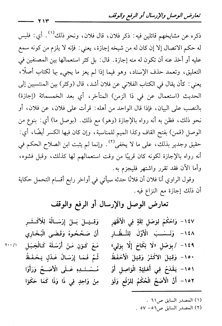 147 - وَاحْكُمْ لِوَصْلِ ثِقَةٍ فِي الْأَظْهَرِ ... وَقِيلَ بَلْ إِرْسَالُهُ لِلْأَكْثَرِ