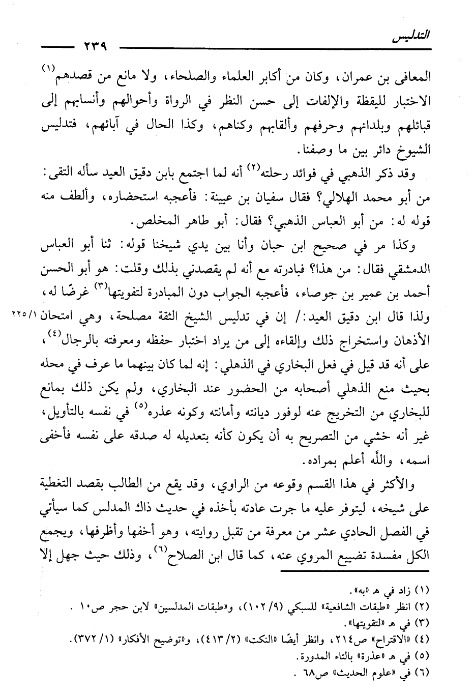 وَكَانَ مِنْ أَكَابِرَ الْعُلَمَاءِ وَالصُّلَحَاءِ، وَلَا مَانِعَ مِنْ قَصْدِهِمُ الِاخْتِبَارَ لِلْيَقَظَةِ، وَالْإِلْفَاتِ إِلَى حُسْنِ النَّظَرِ فِي الرُّوَاةِ وَأَحْوَالِهِمْ وَأَنْسَابِهِمْ إِلَى قَبَائِلِهِمْ وَبُلْدَانِهِمْ وَحِرَفِهِمْ وَأَلْقَابِهِمْ وَكُنَاهُمْ، وَكَذَا الْحَالُ فِي آبَائِهِمْ، فَتَدْلِيسُ الشُّيُوخِ دَائِرٌ بَيْنَ مَا وَصَفْنَا.