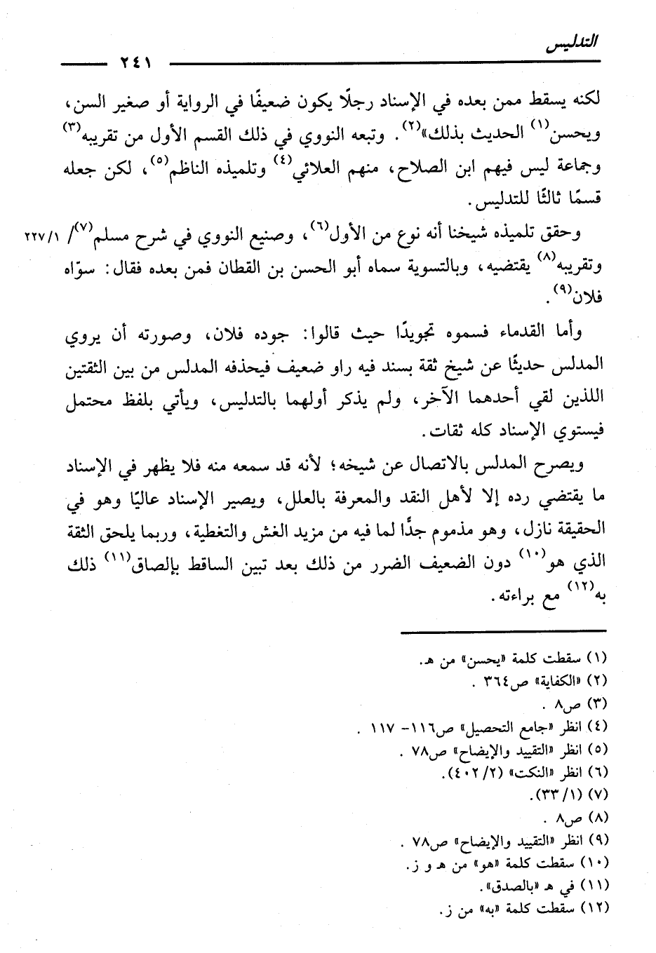 لَكِنَّهُ يُسْقِطُ مِمَّنْ بَعْدَهُ فِي الْإِسْنَادِ رَجُلًا يَكُونُ ضَعِيفًا فِي الرِّوَايَةِ أَوْ صَغِيرَ السِّنِّ، وَيَحْسُنُ الْحَدِيثُ بِذَلِكَ " وَتَبِعَهُ النَّوَوِيُّ فِي ذَلِكَ الْقِسْمِ الْأَوَّلِ مِنْ تَقْرِيبِهِ، وَجَمَاعَةٌ لَيْسَ فِيهِمُ ابْنُ الصَّلَاحِ، مِنْهُمُ الْعَلَائِيُّ وَتِلْمِيذُهُ النَّاظِمُ، لَكِنْ جَعَلَهُ قِسْمًا ثَالِثًا لِلتَّدْلِيسِ.