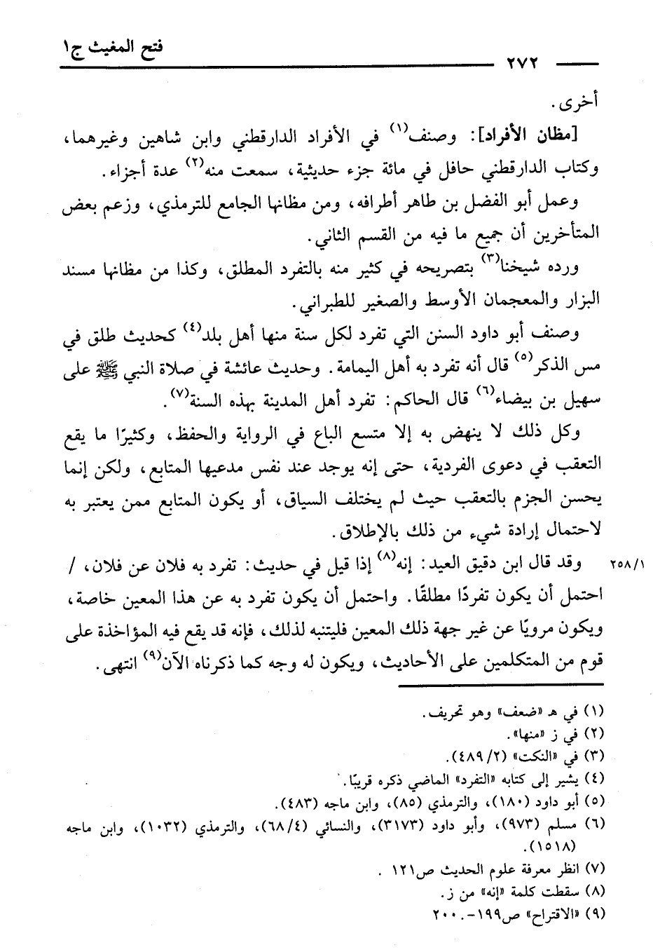 [مَظَانُّ الْأَفْرَادِ] وَصَنَّفَ فِي الْأَفْرَادِ الدَّارَقُطْنِيُّ وَابْنُ شَاهِينَ وَغَيْرُهُمَا، وَكِتَابُ الدَّرَاقُطْنِيِّ حَافِلٌ فِي مِائَةِ جُزْءٍ حَدِيثِيَّةٍ، سُمِعَتْ مِنْهُ عِدَّةُ أَجْزَاءٍ.