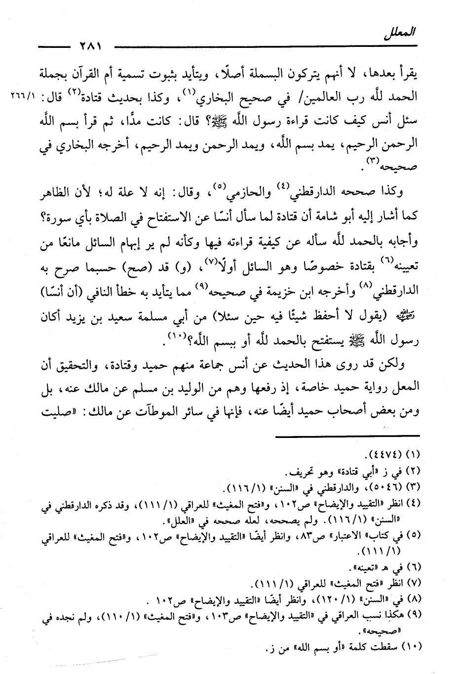 وَكَذَا صَحَّحَهُ الدَّارَقُطْنِيُّ وَالْحَازِمِيُّ، وَقَالَ: إِنَّهُ لَا عِلَّةَ لَهُ ; لِأَنَّ الظَّاهِرَ كَمَا أَشَارَ إِلَيْهِ أَبُو شَامَةَ أَنَّ قَتَادَةَ لَمَّا سَأَلَ أَنَسًا عَنِ الِاسْتِفْتَاحِ فِي الصَّلَاةِ بِأَيِ سُورَةٍ؟ وَأَجَابَهُ بِـ " الْحَمْدُ لِلَّهِ "، سَأَلَهُ عَنْ كَيْفِيَّةِ قِرَاءَتِهِ فِيهَا، وَكَأَنَّهُ لَمْ يَرَ إِبْهَامَ السَّائِلِ مَانِعًا مِنْ تَعْيِينِهِ بِقَتَادَةَ خُصُوصًا وَهُوَ السَّائِلُ أَوَّلًا.