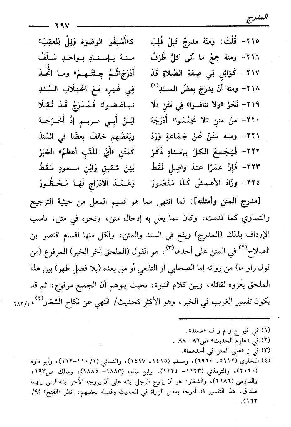 أَدْرَجَ ثُمَّ جِئْتُهُمْ وَمَا اتَّحَدْ ... 218 - وَمِنْهُ أَنْ يُدْرَجَ بَعْضُ الْمُسْنَدِ
