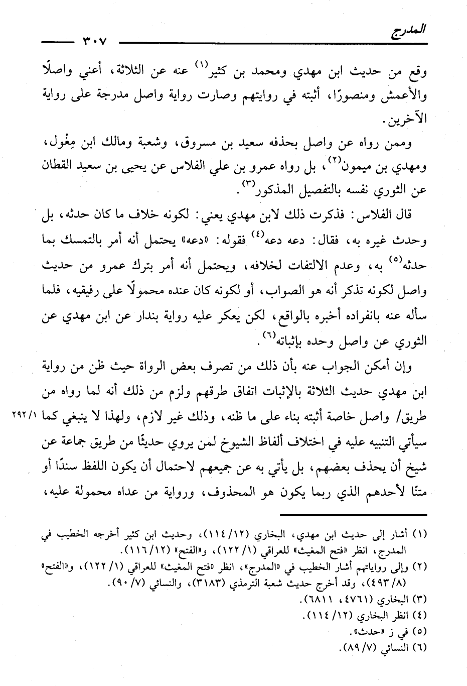 وَإِنْ أَمْكَنَ الْجَوَابُ عَنْهُ بِأَنَّ ذَلِكَ مِنْ تَصَرُّفِ بَعْضِ الرُّوَاةِ ; حَيْثُ ظَنَّ مِنْ رِوَايَةِ ابْنِ مَهْدِيٍّ حَدِيثَ الثَّلَاثَةِ بِالْإِثْبَاتِ اتِّفَاقَ طُرُقِهِمْ، وَلَزِمَ مِنْ ذَلِكَ أَنَّهُ لَمَّا رَوَاهُ مِنْ طَرِيقِ وَاصِلٍ خَاصَّةً أَثْبَتَهُ بِنَاءً عَلَى مَا ظَنَّهُ، وَذَلِكَ غَيْرُ لَازِمٍ.