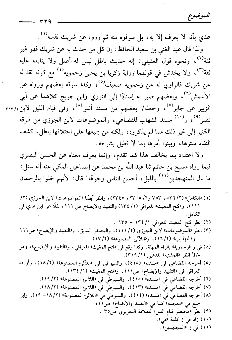 عَدِيٍّ بِأَنَّهُ لَا يُعْرَفُ إِلَّا بِهِ، بَلْ سَرَقُوهُ مِنْهُ، ثُمَّ رَوَوْهُ عَنْ شَرِيكٍ نَفْسِهِ.