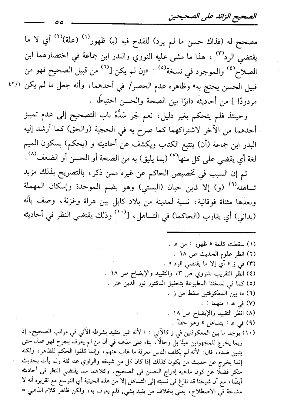 هَذَا مَا مَشَى عَلَيْهِ النَّوَوِيُّ وَالْبَدْرُ بْنُ جَمَاعَةَ فِي اخْتِصَارِهِمَا ابْنَ الصَّلَاحِ، وَالْمَوْجُودُ فِي نُسْخَةٍ: " إِنْ لَمْ يَكُنْ [مِنْ قَبِيلِ الصَّحِيحِ، فَهُوَ مِنْ قَبِيلِ الْحَسَنِ يُحْتَجُّ بِهِ "، وَظَاهِرُهُ عَدَمُ الْحَصْرِ فِي أَحَدِهِمَا، وَأَنَّهُ جَعَلَ مَا لَمْ يَكُنْ مَرْدُودًا] مِنْ أَحَادِيثِهِ دَائِرًا بَيْنَ الصِّحَّةِ وَالْحَسَنِ احْتِيَاطًا.