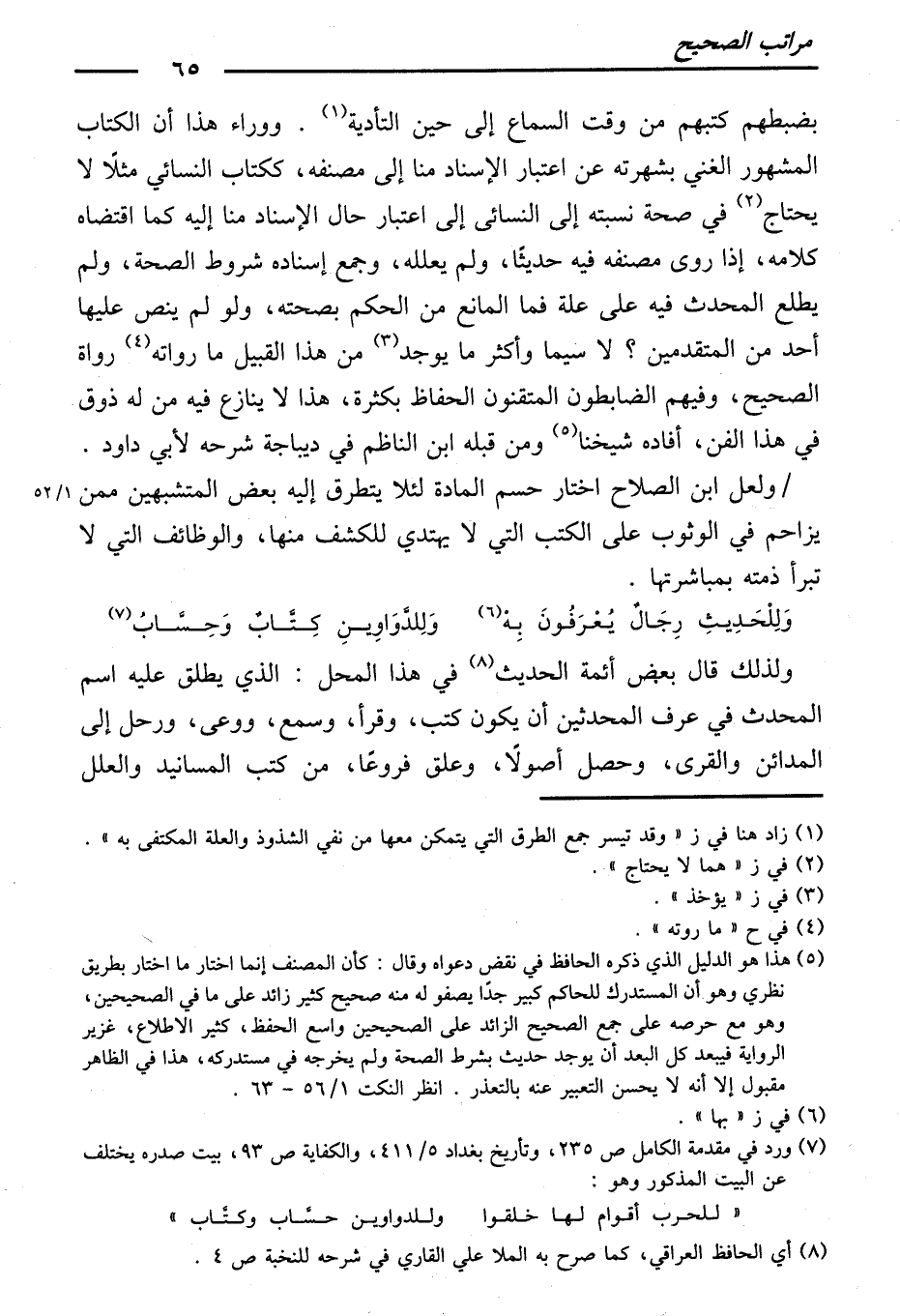 وَلِذَلِكَ قَالَ بَعْضُ أَئِمَّةِ الْحَدِيثِ فِي هَذَا الْمَحَلِّ: الَّذِي يُطْلَقُ عَلَيْهِ اسْمُ الْمُحَدِّثِ فِي عُرْفِ الْمُحَدِّثِينَ أَنْ يَكُونَ كَتَبَ، وَقَرَأَ، وَسَمِعَ، وَوَعَى، وَرَحَلَ إِلَى الْمَدَائِنِ وَالْقُرَى، وَحَصَّلَ أُصُولًا وَعَلَّقَ فُرُوعًا مِنْ كُتُبِ الْمَسَانِيدِ وَالْعِلَلِ