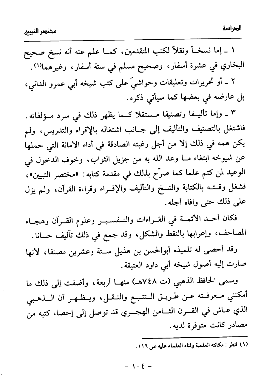 1 - إما نسخا ونقلا لكتب المتقدمين، كما علم عنه أنه نسخ صحيح البخاري في عشرة أسفار، وصحيح مسلم في ستة أسفار، وغيرهما (¬1).